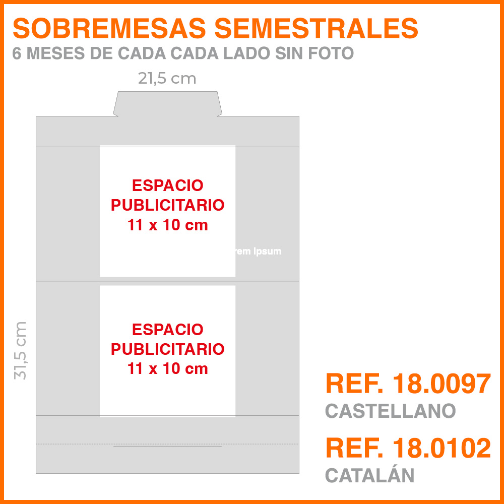 • Área de publicidad: 11 x 10 cm (mayor espacio que en la versión con foto)