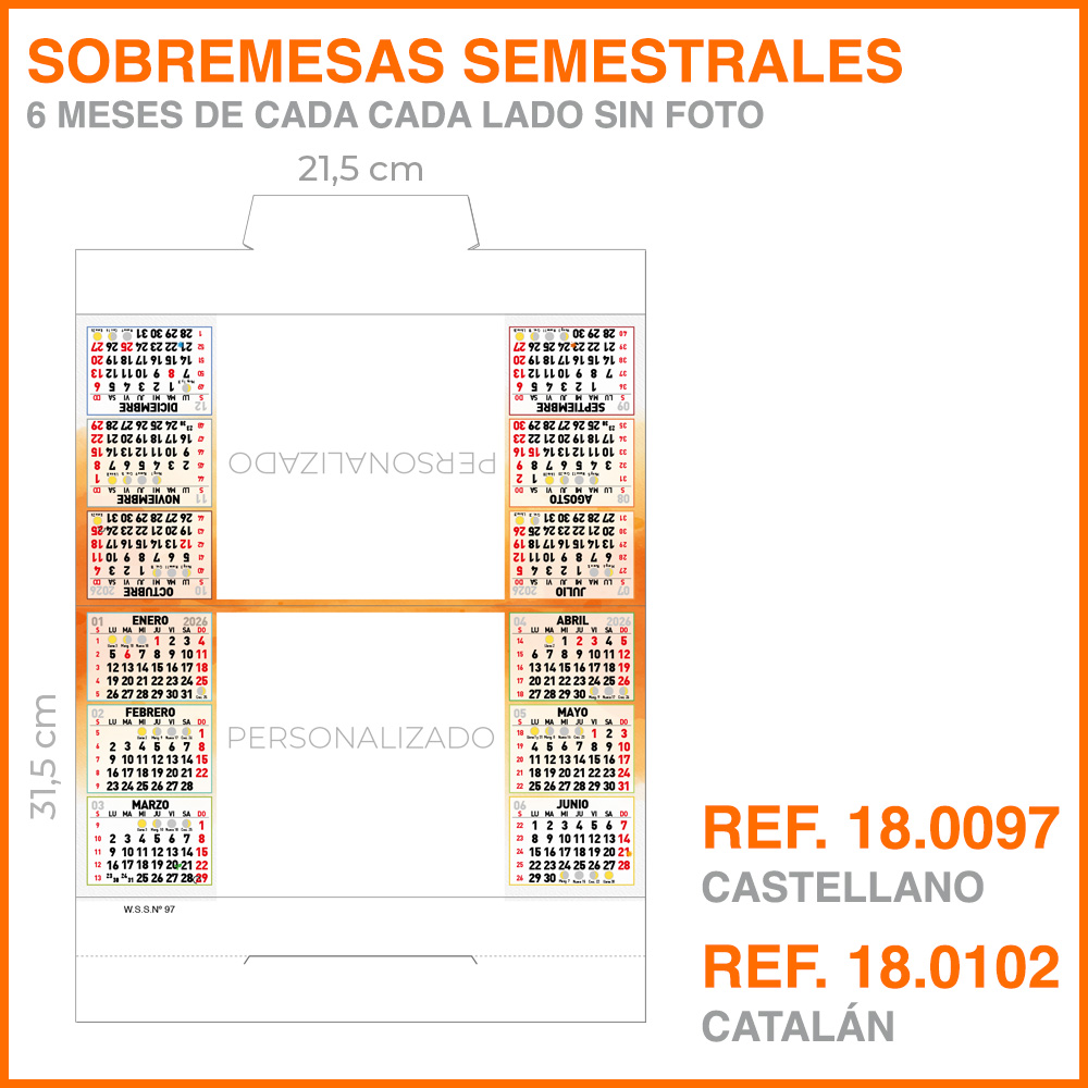 Calendario Semestral de Sobremesa sin foto