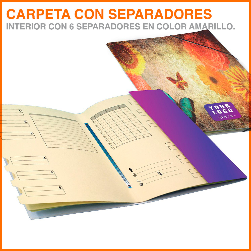 Si tu documentación tiene secciones, esta carpeta es tu mejor aliada. Con separadores internos de color y diseño corporativo, tus contenidos se presentan de forma clara, ordenada y visualmente impactante.
