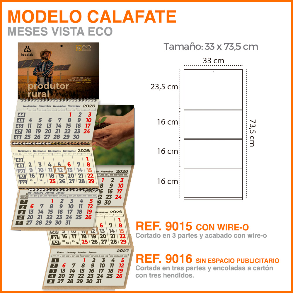 | Opciones Calendario de pared | Con Wire-o, Sin espacio Publicitario |