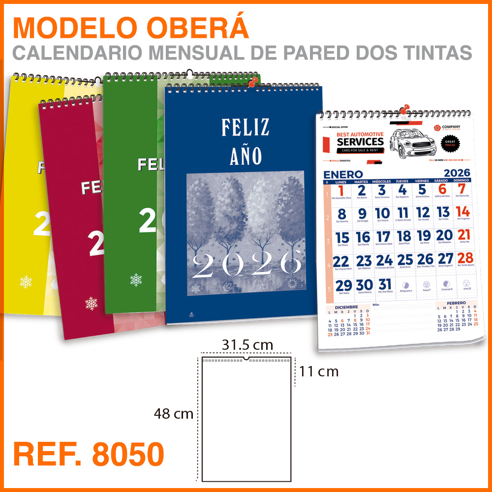 | Opciones Calendario de pared | 13 HOJAS, 1 CARA |