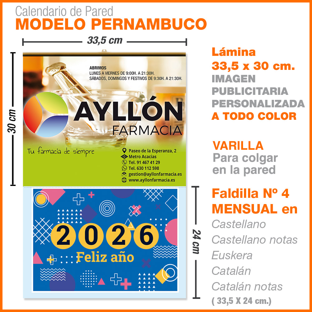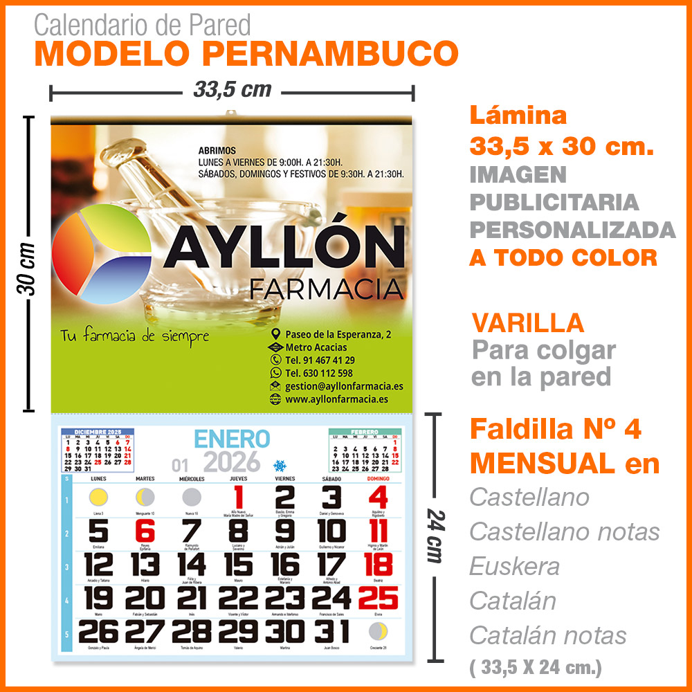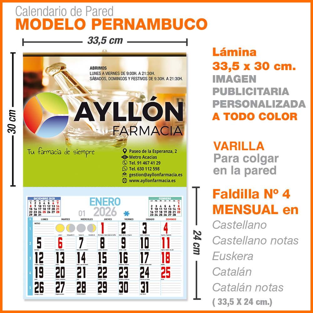 Modelo Pernambuco · Lamina con faldilla mensual de 33,5 cm.